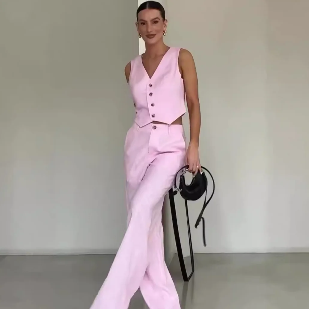Elegant Pink Suits for Women 3 Pieces Jacket Pants Vest Notch Lapel Female Clothing Smart Banquet Office Lady's Blazers Sets